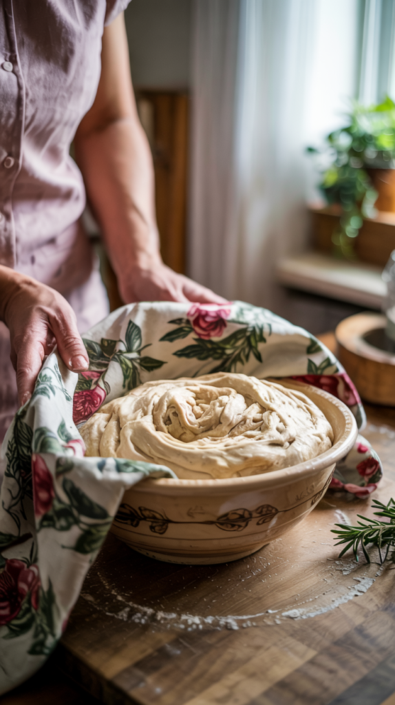 13. Cover with a tea towel and let rise 2-3 hours, until it’s doubled