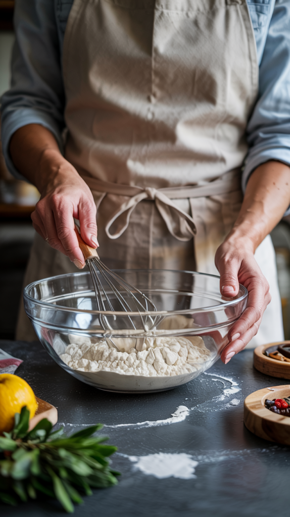 1. Mix the pre-ferment 8-24 hours before you want to bake. Cover with plastic wrap or a plastic bag and let sit on the counter overnight.