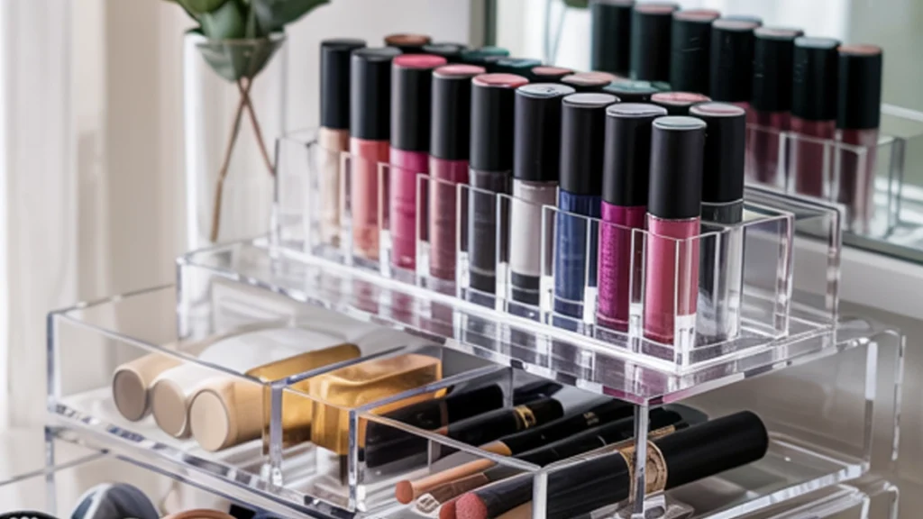 Clear acrylic organizers make it easy to see everything you own at a glance. Use drawer organizers or countertop trays for daily essentials, and vertical lipstick holders to keep your shades neat and upright. Here are a few helpful options: