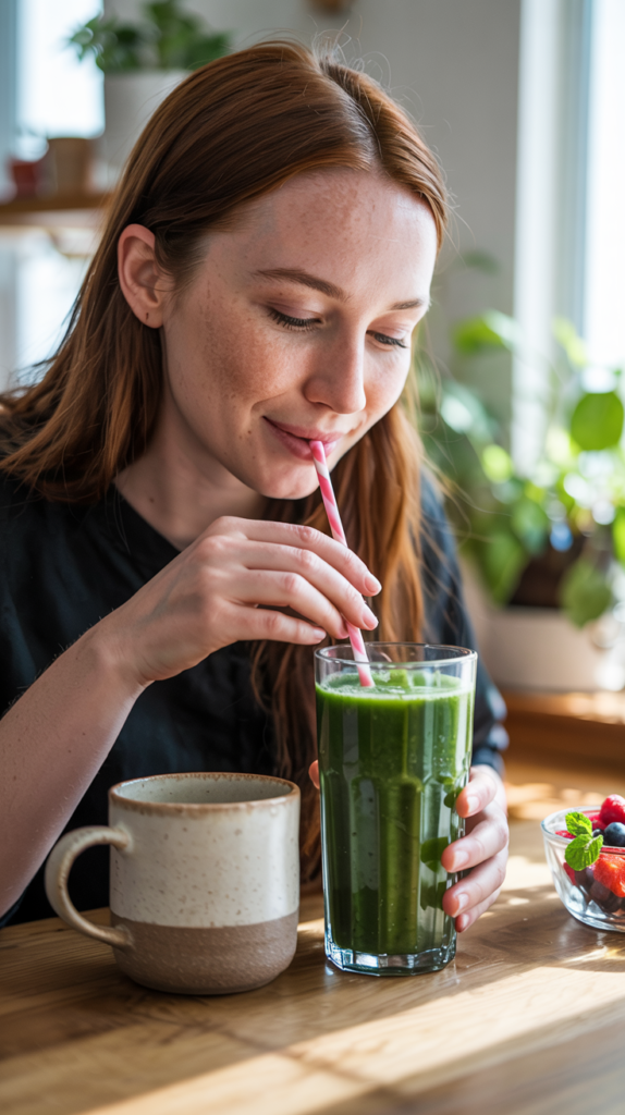 Light, refreshing, Spinach & Chia Seed Morning Smoothie full of fiber, this smoothie supports digestion, boosts energy, and keeps you full until your next meal.