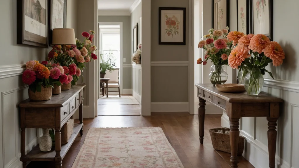 Flowers bring a natural softness and vibrant energy into vintage spaces. Whether you prefer fresh-cut garden blooms or realistic faux arrangements, here are a few easy ways to add floral touches: