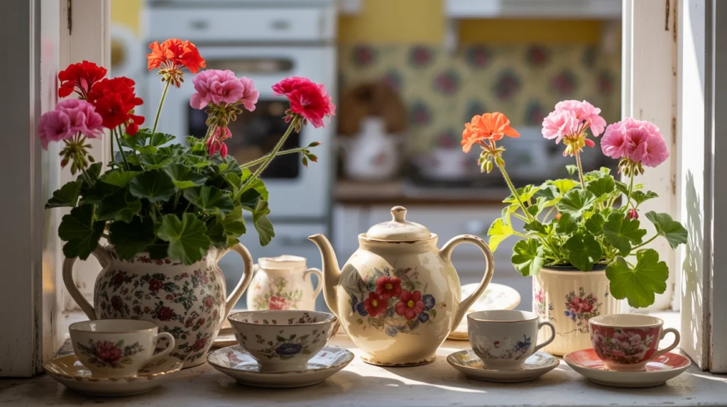 - Vintage watering cans or teapots used as quirky vases